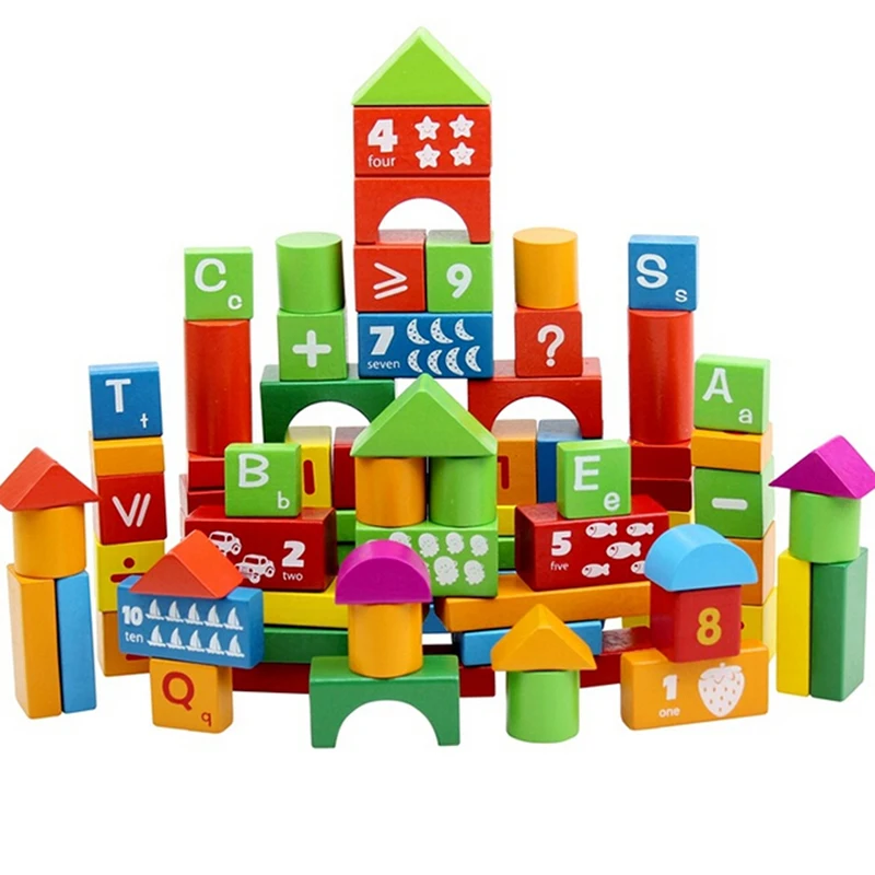 Check Price 100pcs/Set Educational Children's Wooden Building Blocks Cheap